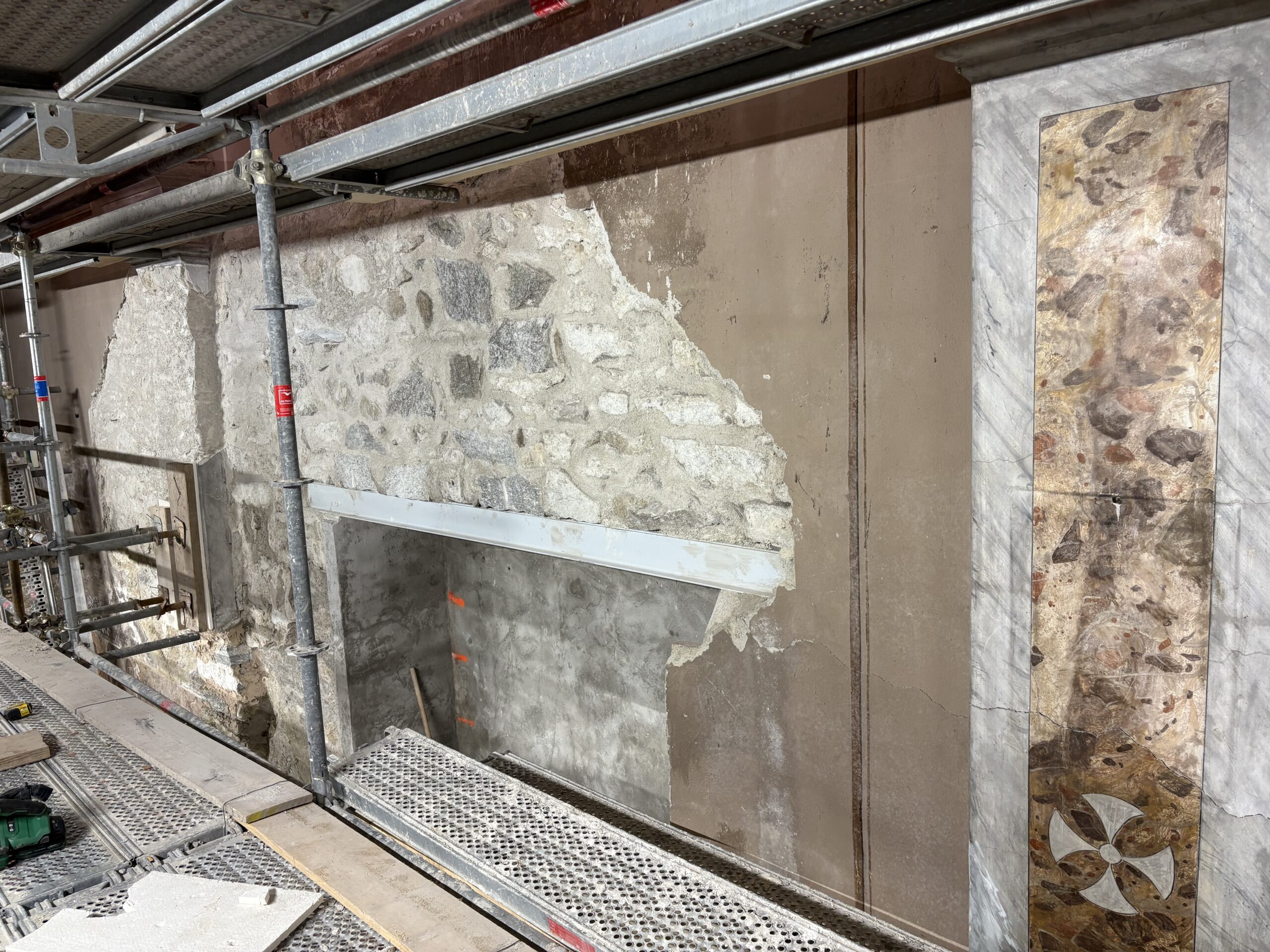 Questa operazione è stata fondamentale sia per il consolidamento del muro che per l’allestimento dei ponteggi.