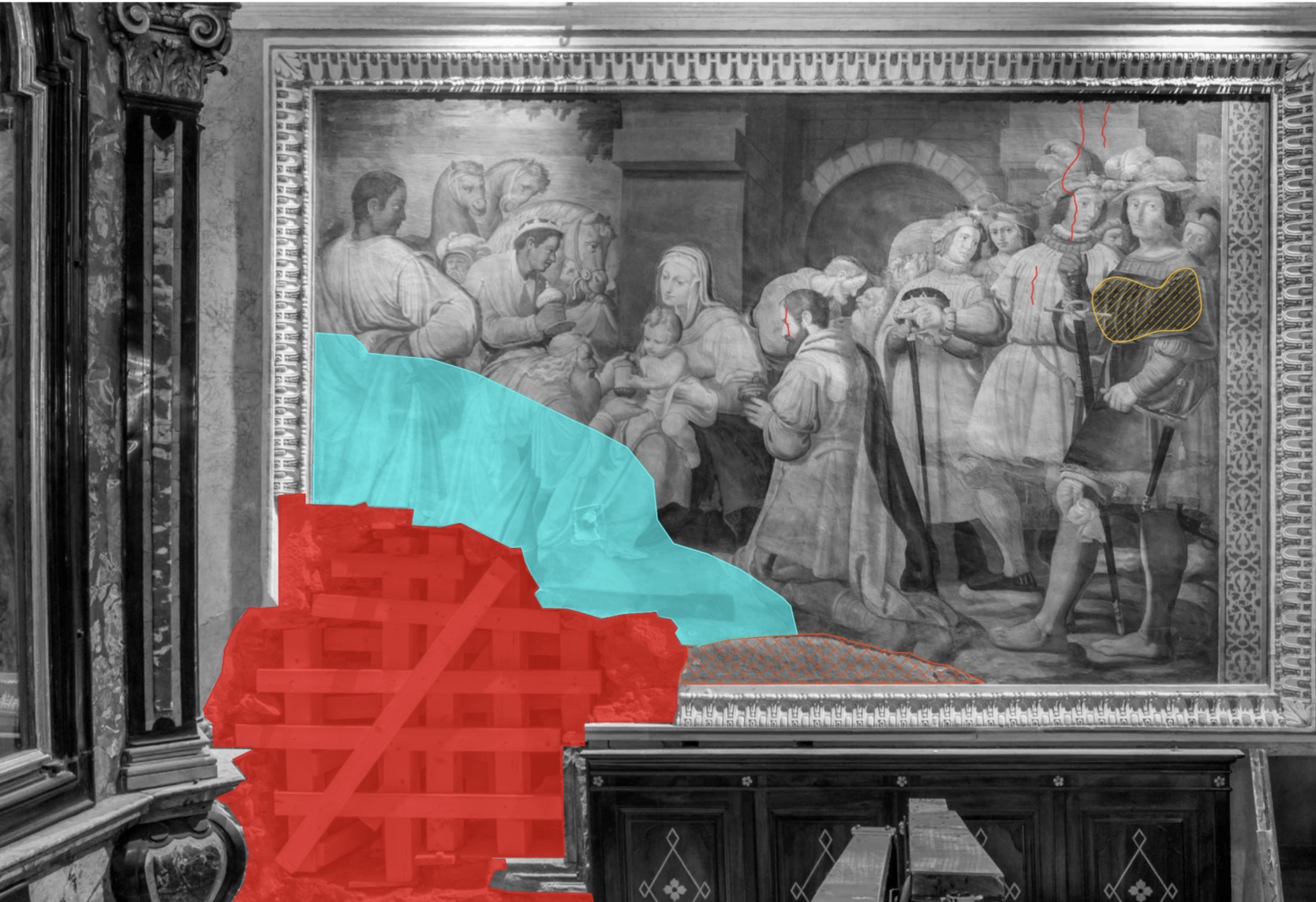 Queste prove, previste nel progetto, sono fondamentali per conoscere le caratteristiche e i componenti dei materiali che compongono intonaci, stucchi, decorazioni, parti lignee, lapidee ed il loro stato di conservazione, e di conseguenza calibrare i materiali da utilizzare per il loro restauro.