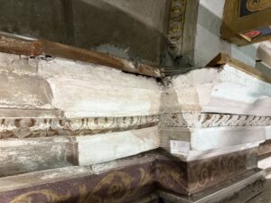 Sono stati montati i ponteggi interni ed esterni ed eseguite le prime puliture delle superfici interne dalla polvere e pulviscolo depositato dopo la caduta di calcinacci e pietre: immaginatevi la quantità rilevante che si è espansa come una nuvola dopo la frana.