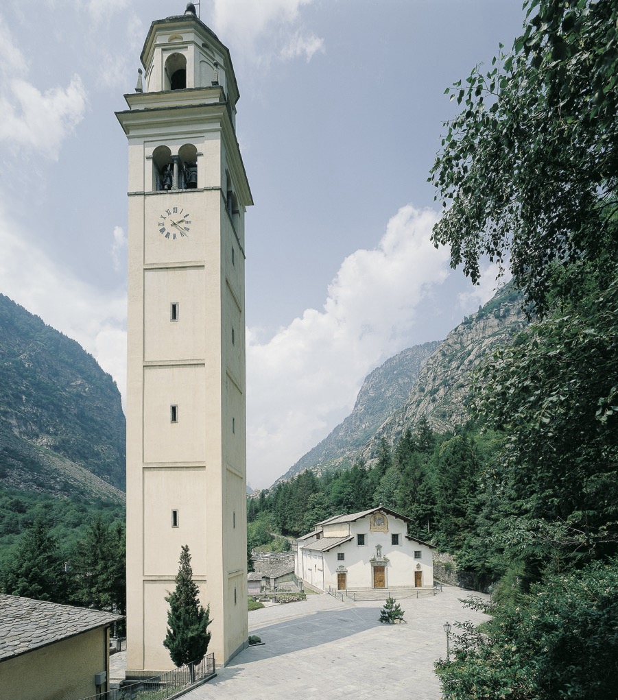 Edificato nel 1730, il campanile fu voluto da subito molto alto (52 metri), a sottolineare l’importanza del luogo per tutta la Valchiavenna.